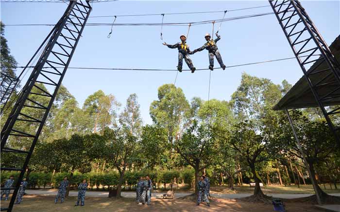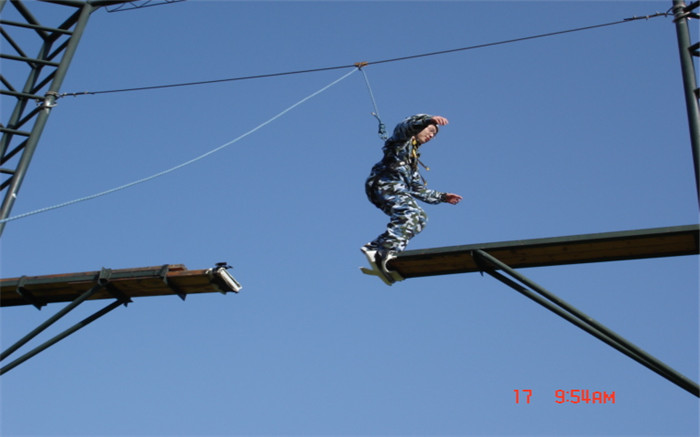 拓展培訓是一項能夠體驗朋友之間、同事之間的充分體現(xiàn)溝通能力、團結(jié)合作的一種團體運動。拓展的高空類里面又包含了很多小項目,(如:跳出真我、高空平衡木、攀巖、巨人梯、斷橋、高低V等)簡單的跟您介紹我們一兩個高空項目的一個操作流程和這個項目所來帶的目的。跳出真我:首先我們先組成一個小團隊,然后單個學員戴好安全頭盔、穿好安全衣,在安全繩的保護下爬上七米高的樁上向前方跳出,并抓住前方1.8米處的空中單杠;而其余的人則在下面拉緊安全繩。或許你會害怕、會猶豫,但是在你跳出的那瞬間你就會覺得海闊憑魚躍,天高任鳥飛。很多時候當面臨一份抉擇的時候,只有大膽的跳出去,才是真正的海闊天空。高空平衡木:首先我們也是組成一個小團隊,然后單個學員戴好安全頭盔、穿好安全衣,在安全繩的保護下走過距離地面七米高、長六米、直徑只有二十五厘米的獨木橋?;蛟S你平衡能力不好、或許你在上往下看是會害怕。但是這個項目卻能讓你挑戰(zhàn)自我,挖掘潛能。當面前的路只有唯一選擇的時候,那就大膽的向前走。在所有項目培訓期間要注意1、必須服從教練及訓練工作人員的管理;2、有心腦血管、癲癇等疾病不適合參加培訓的,應(yīng)在訓前告知本單位管理人員或我公司教練;3、嚴格遵守作息時間,禁止賭博、飲酒、培訓過程中禁止吸煙。