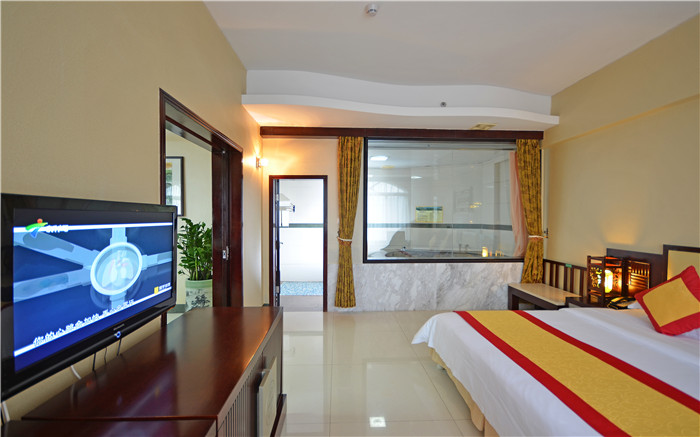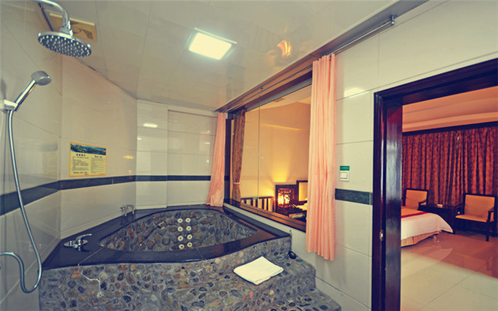 商務(wù)樓客房為于公司主樓,屬于商務(wù)型客房,層高6層,站在商務(wù)客房內(nèi)可一覽景區(qū)風(fēng)景,清晨,推開窗戶。微風(fēng)吹來,一陣清新、幽香、淡雅的泥土氣息迎面而來。商務(wù)樓設(shè)有三種房型,分別為豪華一房一廳(房間帶室內(nèi)溫泉池)、豪華雙人房(不帶室內(nèi)溫泉)、豪華三人房(不帶室內(nèi)溫泉)酒店客房豪華溫馨,配有空調(diào)、書桌、電話、液晶電視、房內(nèi)保險(xiǎn)箱、洗刷用品、淋浴設(shè)施,吹風(fēng)機(jī)、免費(fèi)桶裝水、免費(fèi)WiFi等設(shè)施,住房包含了露天無限次溫泉門票和自助早餐,健身房、水療SPA、羽毛球、乒乓球、臺球等,無限量免費(fèi)提供飲料,水果。溫泉總的有60幾個露天溫泉池。其中有養(yǎng)生區(qū)(如茉莉花池、人參池、牛奶池、酒池等)、水療SPA按摩區(qū)、高溫池等等特色溫泉池。如需詳細(xì)了解請?jiān)诰€咨詢哦。使您在度假村盡情玩樂后能夠享受溫馨的住宿。